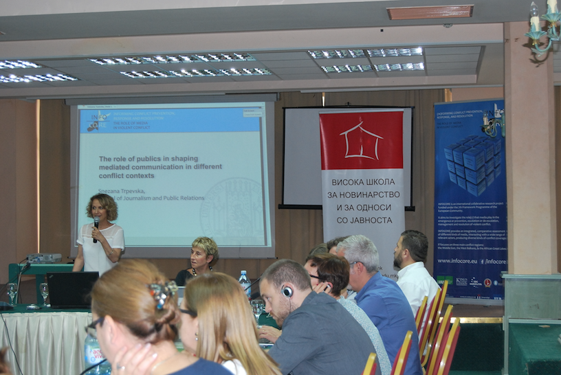 The Brussels Final Dissemination Conference was held on 17 November 2016 to a diverse audience composed of stakeholders and representatives from NGOs policy-makers, journalists and media, academics and students. The INFOCORE researchers presented the final results and policy recommendations from their respective work packages which ultimately seek to gain a deeper understanding of news creation in conflict areas; more specifically in Israel and Palestine, in Syria, in Kosovo, in F.Y.R.O. Macedonia, in Burundi and in the DRC. Major topics which were also addressed include the role of NGOs in conflict news reporting, the role of new media in conflict-related news, how the general public views the media in war zones, the impact of gender on conflict news and its coverage, and specific policy implications of the INFOCORE research.