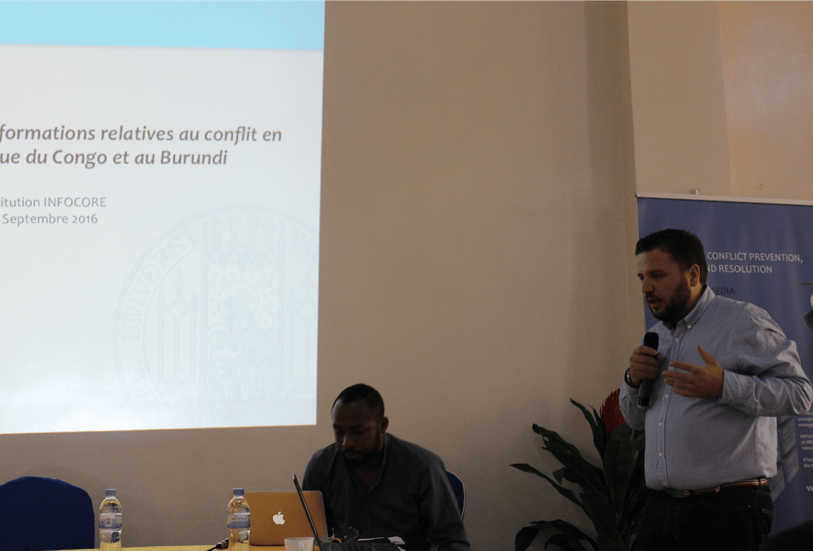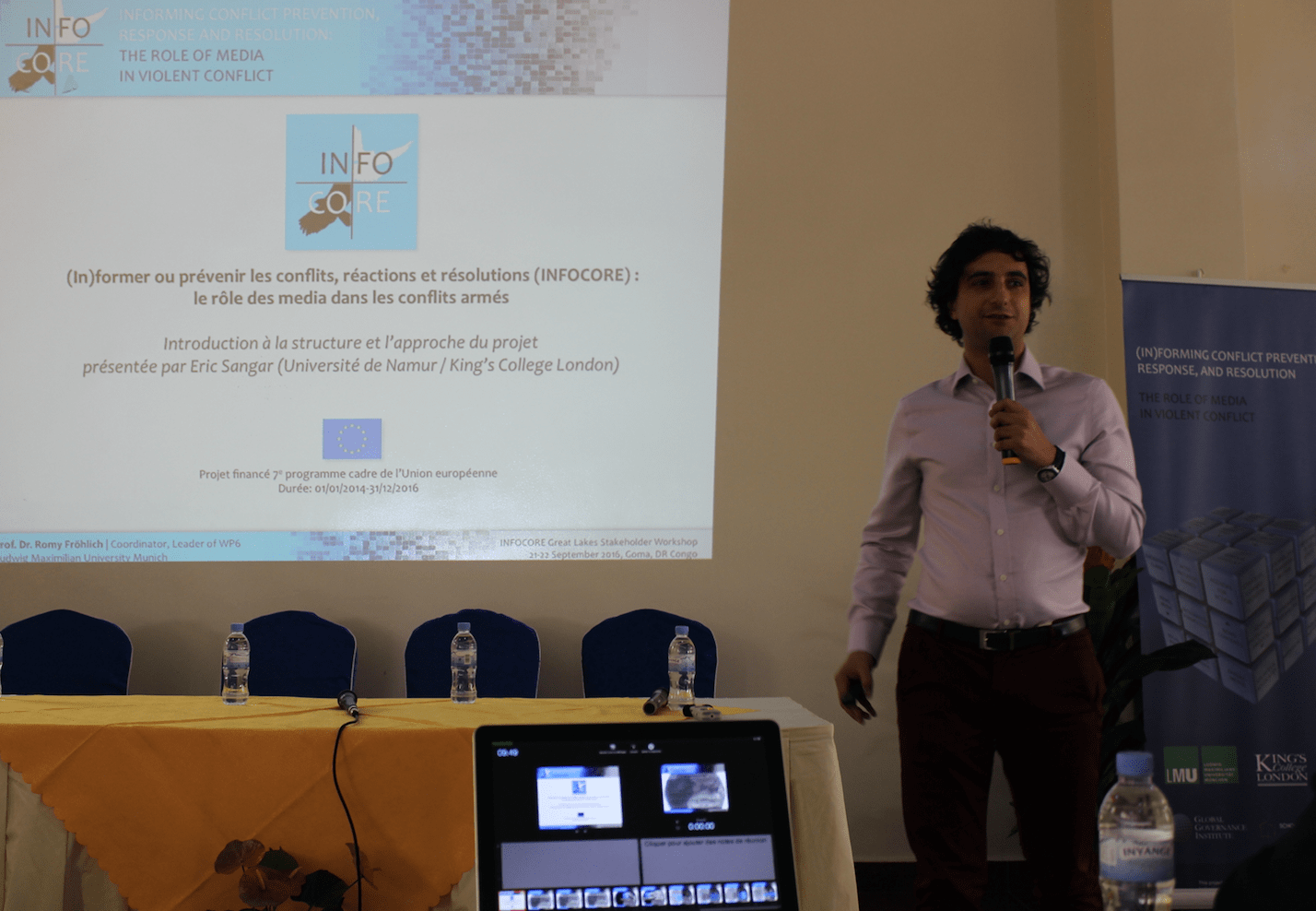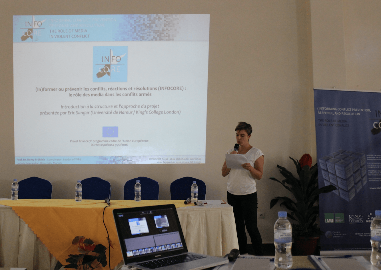 On 28 and 29 September 2016, five researchers from the INFOCORE team, representing almost all work packages of the project gathered with around 50 journalists, academics, policy makers and civil society representatives from the DRC and Burundi. This third INFOCORE dissemination stakeholder workshop took place in the town of Gisenyi (in Rwanda) and aimed at discussing the first provisional findings from the different work packages.