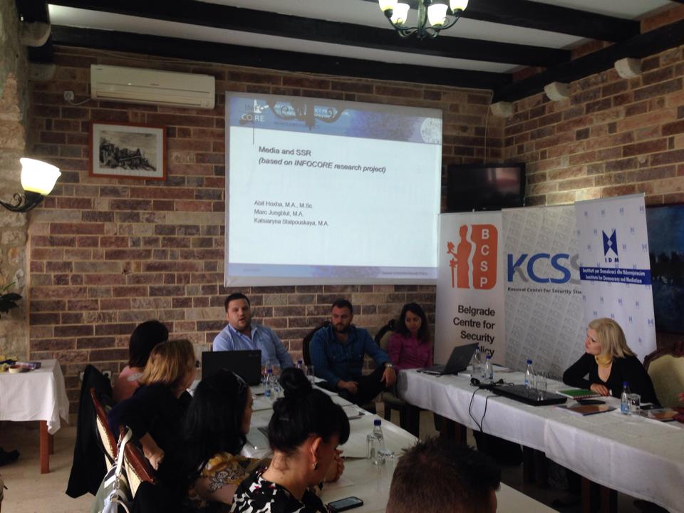 Abit Hoxha, Marc Jungblut and Katsiaryna Stalpouskaya of the INFOCORE consortium were invited to host a panel at the Summer School on Security Policy held by the Kosovar Center of Security Studies (KCSS), the Belgrade Centre for Security Policy (BCSP) and the Albanian Institute for Democracy and Mediation (IDM) on May 12th in Ulcinj, Montenegro. The panel was held for the audience consisting of journalists, NGO activist and other practitioners. The three doctoral researchers of the INFOCORE from Ludwig Maximilian University of Munich presented INFOCORE’s general conceptual framework as well as their work associated with media and conflict. The panel was wrapped up by a Q&A session, at which the participants expressed their keen interest in the methodological aspect of the project as well as its future results and outcome.